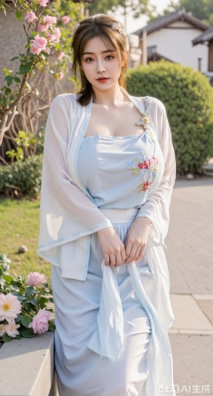 masterpiece, best quality, highres, extremely detailed, 1girl,(hanfu dress:1.26),looking at viewer,indoors, (big breasts:2.69),Depth of field,garden of the sun,shiny,flowers, garden, 1girl, (Lotus:1.39), (butterflies, ultra detailed, glary,Light, light particles,glitter,reflect:1.29), (huge breasts, full breasts),Xhanfududou