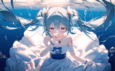 masterpiece,very aware,highres,absurdres,newest,best quality,loli,petite,high quality,chromatic_aberration,cinematic_angle,dutch angle,//,artist:ciloranko,artist:ningen_mame,artist:sho_(sho_lwlw),artist:rhasta,artist:wlop,artist:ke-ta,artist:hiten \(hitenkei\),//best,hatsune miku, jewelry, reaching, underwater, dress, necklace, bubble, reaching towards viewer, long hair, pov, air bubble, blue theme, solo focus, bare shoulders, white dress, blue eyes, submerged, twintails, collarbone, multiple girls, pov hands, 2girls, off-shoulder dress, outstretched hand, blue hair, half-closed eyes, blurry, out of frame, hair between eyes, frills, pendant, aqua hair, hair ornament, outstretched arm, female pov, off shoulder, wrist cuffs, blurry foreground, very long hair, frilled dress, depth of field, covered mouth, blue nails, aqua eyes, skirt hold, floating hair, number tattoo, aqua theme, 1girl, covering own mouth, fingernails, breasts, tattoo, nail polish, water, looking at viewer, caustics, brooch, drowning, aqua nails, shoulder tattoo, frilled cuffs, gem, flower, scrunchie, wide sleeves, backlighting, hair flower, sidelocks, open hand, short sleeves, reflection, dual persona, foreshortening, blurry background, arm tattoo, sunlight, small breasts, from above, 1other, sleeveless, blush, hand up, shell hair ornament, amulet, sleeveless dress, wrist scrunchie, gloves, detached sleeves, white scrunchie, eyelashes, blue gemstone, blue dress, hair bow, blue gloves, tears, strapless