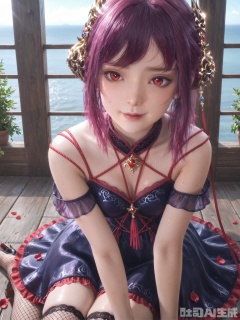 score_9,score_8_up,score_7_up,realistic,photorealistic,1girl,looking_at_viewer,realistic,1girl,Vivid Colors,bright environment,delicate water,hair_ornament,shiny skin,shiny hair,reflection,dress,flower sea,falling petals,extreme detail description,(full body:0.3),put one hand on your side,,(skindentation:1.3),Fishnet stockings,bright,sunshine on face,light,sweating,dress,light,sitting_down,glowing,sunshine,bright,reflection,(crimson_eyes:1.3),red rope,deep red eyes