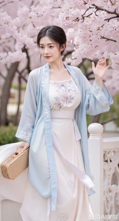 (masterpiece:1.2),best quality,A beautiful girl in Song - style Hanfu, wearing a light - blue collared shirt and a white hundred - pleated skirt, strolls in the peach forest in spring. The collared shirt is embroidered with light - pink peach blossom petals, and the peach blossom embroidery on the hundred - pleated skirt is more complex. She holds a bamboo basket and is picking the fallen peach blossoms, with joy on her face. All around, peach blossoms are in full bloom, and falling petals are like a dreamy scene, ,(huge breasts:2.99), (full breasts:2.99),XyunxiaoYK,Xbigbreasts,Xrixirenxiangsheying,Xmengru,XfuqingyunY,Xfenhanfududou,Xhanfusiwa,Xsonghanfu,XshixiaoY