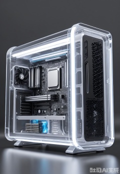 SMCJ, A high-performance graphics card with advanced cooling technology, installed in a transparent PC case against a dark, neon-lit background. The graphics card delivers exceptional gaming and rendering performance. The transparent case showcases its internal components. The neon lighting adds a futuristic, gaming-centric vibe.