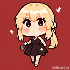 KACX, Digital drawing of a chibi-style character, Adele, in a elegant black dress and with a microphone, with a soulful expression and long blonde hair. The background is a solid deep red color with two small white musical notes on either side of the character. The character has a small, round body and big, emotional eyes, typical of chibi art. The drawing is simple and cute, with bold outlines and minimal shading.