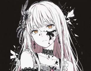 simple background,best quality,masterpiece,1girl,solo,looking at viewer,1girl,depth of field,face_focus,<lora:凑友希那:1>,half squint,Yukina Minato,long hair,black_background,(broken theme:1.3),(broken picture:1.5),(background broken:1.3),close-up,(sketch:1.8),(spot_color:1.8),black and white,(monochrome:1.8),(sketch:1.3),golden eyes,crack all over,((no colour:1.9)),diertao,bare shoulders,dier bow bowtie,dier lace choker,dier detached sleeves,dier earrings,dier feather hair ornament,frills,dier hair flower,dier lace-trimmed sleeves,dier layered dress