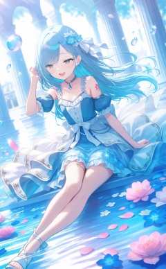 masterpiece,very aware,highres,absurdres,newest,best quality,(loli),petite,high quality,chromatic_aberration,White Theme,//,1girl,flower,solo,frills,dress,hair_ornament,pillar,swept_bangs,high_heels,frilled_dress,hair_flower,dutch_angle,ankle_strap,blue_dress,column,blue_hair,white_flower,water,light_blue_hair,petals,sitting,dot_nose,jewelry,gem,blurry,pearl_\(gemstone\),smile,ripples,mole,ribbon,full_body,choker,mole_under_mouth,long_hair,strappy_heels,blue_theme,detached_sleeves,glint,blue_eyes,puffy_sleeves,white_ribbon,collarbone,open_mouth,blue_gemstone,hand_up,floral_print,floor,dress_flower,blurry_background,bare_legs,crystal,water_drop,layered_dress,bare_shoulders,tattoo,sandals,sleeveless_dress,breasts,tsurime,earrings,depth_of_field,blue_flower,light_particles,short_sleeves,white_footwear,small_breasts,half-closed_eyes,caustics,pink_flower,sunlight,soaking_feet,eyelashes,diamond_\(gemstone\),frilled_sleeves,fingernails,upper_teeth_only,hair_ribbon,sleeveless,puffy_short_sleeves,sparkle,teeth,bubble,flower_earrings,armpit_crease,floating_object,pink_gemstone,silver_trim,snowflake_print,:d,beads,happy,blue_ribbon,grey_eyes,shoulder_tattoo,belly_chain,leg_tattoo,looking_afar,petals_on_liquid,day,gold_trim,waist_bow,falling_petals,see-through,//,artist:luvluvvox,artist:fukai ryosuke,[artist:Torino aqua],artist:minato hitori,hiten_(hitenkei),artist:rurudo,artist:lazuri7,artist:yunikon,//,absurdres,newest,very aesthetic,amazing quality,highres,sensitive,ultra detailed,best anatomy,HDR,8K,high detail RAW color art,high contrast,illustration,depth of field,(colorful),phenomenal aesthetic,detailed light,blurred picture,Tyndall effect,contrast,lens flare,cinematic lighting,//,<lora:PVC5——【noob】hans:0.3>,<lora:konya_karasue——【noob】hans:0.5>,<lora:pjsk-noob-hans:0.65>,