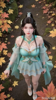 - Composition: Using an overhead perspective, the composition fully includes the character and the surrounding fallen leaves, presenting a broad visual effect. The character forms the visual focal point in the frame, with the fallen maple leaves and surrounding foliage serving as a foil. The character's hand interacts with the leaves.