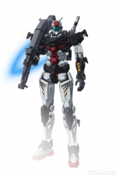 looking at viewer,RX_78_1(GQUUUUUUX_VER),full_armor,superrobet,Gundam,machinery,holding_weapon,gun,no_humans,glowing,robot,holding_gun,mecha,science_fiction,energy_gun,beam_rifle,strong contrast,mechanical buddy universe