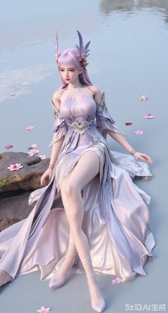 (masterpiece:1.2),best quality,1girl, solo, long hair, pruple hair, dress, sitting, full body, flower, sky, water, high heels, petals, bare legs, pink dress, white dress.,(huge breasts:2.99),(full breasts:2.99),,XyunxiaoYK,Xbigbreasts,Xrixirenxiangsheying,Xmengru,XfuqingyunY,Xfenhanfududou,Xhanfusiwa,Xsonghanfu,XshixiaoY,XyunwangshuY,XlinziyueYH,XtangzichenK