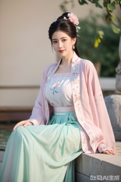 (((black hair))),(Sitting on the lotus pond porch:1.49) ,(A pond full of pink lotus flowers:1.5),close up of 1girl,Hairpins,hair ornament,hair wings,slim,narrow waist,perfect eyes,beautiful perfect face,pleasant smile,perfect female figure,detailed skin,charming,alluring,seductive,erotic,enchanting,delicate pattern,detailed complex and rich exquisite clothing detail,delicate intricate fabrics,