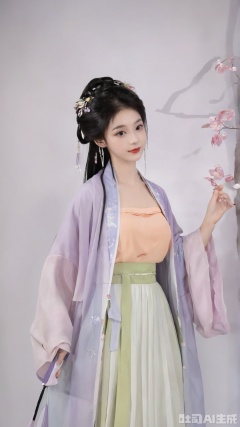 A beautiful young lady wearing Hanfu, very beautiful, standing in a pose,(big breasts:1.59),Xsongzhihanfu,Xvangoghs,Xsutaner,Xhulianxin, song_hanfu