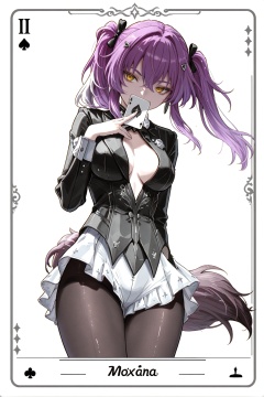 Poker background,poker design,real poker,ace,♠️A,White background,simple background,white theme,folds,close your mouth,poker card,card,solo,monochrome,poker Poker ♥,Trump card,card,poker,ace (playing card),joker_(playing_card),(daram_(shappydude):0.55),(moto_murabito:0.625),(murata_range:0.65),(shigatake:0.45),(hiten:0.65),(aaaa \(quad-a\):0.4),(card_\(theme\):1.1),solo,(white-color-scheme:1.1),Character card,thick line,solo,card border,frame pattern,facial lighting,",Poker,<lora:yixuan-moxin-ill-Tanger:0.8>,clothes: moxing black suit,white  ruffled underdress peeks,attached auxiliary sleeves,black pantyhose,moxing black suit jacket,<lora:lupawave-ill-Tanger:0.8>,lupa \(Wuthering Waves\),lupa hair ornament,1girl,twintails,breasts,purple hair,yellow eyes,tail,