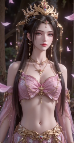 <lora:李慕婉·衣服百搭款6:1.1>,limuwan,black hair,long hair,grey eyes,jewelry,earrings,crown,phoenix_crown,1girl,jewelry,solo,blonde hair,bracelet,navel,earrings,skirt,long hair,midriff,necklace,forest,see-through,breasts,tree,nature,closed eyes,hair ornamentcover,gradient background,close-up details,outstanding style,adding a touch of dimension to your images without compromising details,close-up,<lora:DJ滤镜_2.5D版:0.3>,lvjing,<lora:油画唯美滤镜15:0.2>,baoshi,<lora:蝴蝶汉服·人物百搭款6:1.1>,fuzhuang,
