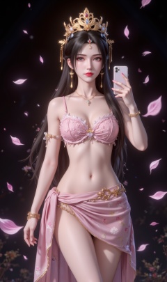 <lora:比基尼2·人物百搭款6:1.1>,bijini,1girl,solo,jewelry,long hair,swimsuit,sarong,breasts,bikini,bracelet,selfie,navel,phone,collarbone,flower,black hair,floral print,brown hair,cellphone,cleavage,skirt,cowboy shot,earrings,holding,black_background,simple background,<lora:李慕婉·衣服百搭款6:1.1>,limuwan,black hair,long hair,grey eyes,jewelry,earrings,crown,phoenix_crown,(large breasts:1.2),cover,gradient background,close-up details,outstanding style,adding a touch of dimension to your images without compromising details,close-up,<lora:DJ滤镜_2.5D版:0.3>,lvjing,<lora:油画唯美滤镜15:0.2>,baoshi,
