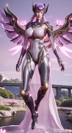 (masterpiece:1.2),best quality, (UE5.5,rendered with Unreal Engine 5,Unreal Engine 5,CG rendering),1girl,big breasts,weapon,wings,holding weapon,lips,bodysuit,covered navel,skin tight,science fiction,dual wielding,mechanical wings, ,(huge breasts:2.99),(full breasts:2.99),(lotus pond and pink lotus flowers:1.59),,(very long legs,Diamond-studded high heels:1.5),,XliumeiYK,XlishaoyingXK,XyunxiaoYK,XxiaobaiYK,Xmeinv,Xbigbreasts
