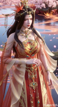 (masterpiece, best quality:1.23)A girl wearing a Chinese - style wedding dress with a phoenix coronet and xiapei. The xiapei uses exquisite kesi technique to present the pattern of dragon and phoenix bringing prosperity, with a strong three - dimensional sense. The bead strings hanging from the phoenix coronet are of different lengths, each bead is round and full, inlaid with golden stamen decorations. The girl stands in a peach - blossom forest filled with fairy air, and flower petals are falling like snow, just like a fairy in the flowers,(huge breasts, full breasts:2.98),XliumeiY,XyueliuY,Xyunwangshu,XlishaoyinY,XyunwangshuxiheY,XlinziyueYH,XtangzichenK,Xnuwashenian,Xbigbreasts,XyanqingfeiY,XyinyueXH,XyunwangshuBF,XyunwangshuHF