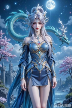 Masterpiece, best quality, high quality,  (black hair: 1.4), (long legs :1.4),AIAHZ,1girl, veil,Photorealistic style, stunning silver-haired warrior standing sideways, porcelain skin with sapphire-blue eyes. Full-body armor in cold moon silver-blue hue drapes her graceful figure, embossed with rose gold vines and iris patterns, shoulder guards set with starry sapphires. Layered ruby fringe necklace, teardrop crystal earrings, mithril crescent forehead ornament. Background features an emerald dragon coiled over a crumbling crystal castle, molten-gold eyes, iridescent scales refracting light, wings eclipsing the sky. Violet blossoms and glowing moss amidst ruins, crystal shards floating in mist. Moonlight beams pierce clouds, soft-focus glow envelops figure, Tyndall effect with stardust particles, 8K ultra-detailed, epic composition,epiCRealism,RealisticVision,8K resolution, ultra-detailed,realistic fabric physics, cinematic lighting,hair flow dynamics,natural perspective,skin texture, subsurface scattering,balanced composition,centered subject,sharp focus,normal hands (5 fingers),natural joint articulation,Low-cut,Expose the thighs