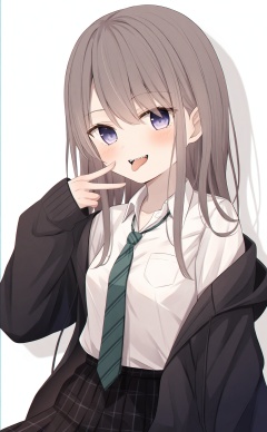 white_background,masterpiece,very aware,highres,absurdres,newest,best quality,loli,petite,high quality,chromatic_aberration,loli,loli,//,1girl, shirt, solo, necktie, skirt, diagonal-striped_clothes, white_shirt, diagonal-striped_necktie, tongue, black_skirt, collared_shirt, green_necktie, teeth, long_hair, brown_hair, black_jacket, looking_at_viewer, open_clothes, tongue_out, jacket, long_sleeves, blush, pleated_skirt, white_background, breasts, sharp_teeth, shadow, striped_necktie, plaid, hand_up, open_jacket, school_uniform, simple_background, smile, striped_clothes, plaid_skirt, open_mouth, dress_shirt, off_shoulder, loose_necktie, black_cardigan, sleeves_past_wrists, pocket, puffy_long_sleeves, blue_eyes, purple_eyes, medium_breasts, shirt_tucked_in, hood, upper_teeth_only, hair_between_eyes, hood_down, sidelocks, hooded_jacket//,//,<lora:千道センリ——【noob】hans:0.8>,