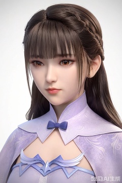 score_9_up,1girl, solo, long hair, bangs, simple background, brown hair, black hair, white background, dress, bow, brown eyes, closed mouth, upper body, braid, blunt bangs, lips, portrait, realistic,ZCN