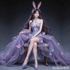 jiangnannan,black hair,long hair,wavy hair,very long hair,brown eyes,fair_skin,rabbit ears headwear,lvjing