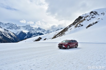 mpv, masterpiece, Snow mountain, a car from Toyota is driving on a snowy mountain,vehicle focus