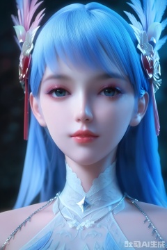 score_9,score_8_up,score_7_up,1girl, solo, long hair, looking at viewer, blue eyes, hair ornament, dress, bare shoulders, eyeshadow, blue hair, upper body, lips, realistic