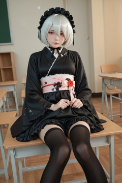 1girl,2b,classroom,sitting,black thighhighs,wa_lolita,