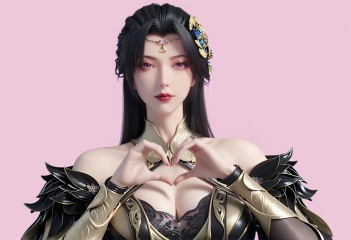 (score_9),<lora:柳如烟-Apony:0.8>,lry,(mature_female),solo,long hair,hair ornament,black hair,mole under eye,detached collar,forehead jewelry,wrist guards,dress,sleeve,<lora:perfect eyes_v1:0.68>,bright pupils,upper body,looking at viewer,front view,light blush,heart hands,<lora:Expressive_H-000001:0.8>,(glamor:1.2),curvy,collarbone,pointy breasts,puffy breasts,large breasts,narrow waist,simple background,pink background,<lora:皮肤凹痕:1.2>,