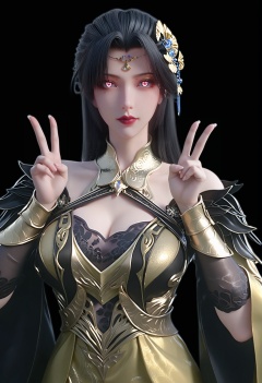 (score_9),<lora:柳如烟-Apony:0.8>,lry,(mature_female),solo,long hair,hair ornament,black hair,mole under eye,detached collar,forehead jewelry,wrist guards,dress,sleeve,<lora:perfect eyes_v1:0.68>,bright pupils,upper body,looking at viewer,front view,double v,light blush,<lora:Expressive_H-000001:0.8>,(glamor:1.2),curvy,collarbone,pointy breasts,puffy breasts,large breasts,narrow waist,simple background, black background,