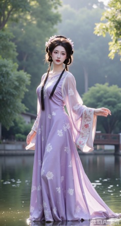 (masterpiece,best quality:1.23),Long - legged and enchanting beauty in a purple long gown with a fairy - like glow, against a background of a quiet bamboo forest in the morning mist,(huge breasts, full breasts:2.98),Xhanfududou,Xsongzhihanfu,Xlujiajia,Xyanqingfei,XfuqingyunY,Xtangqixiongshanqun,Xfeitianhanfu,Xqinghannu,XmeijiX2,XmeijiX