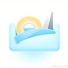 3DMS, A digital illustration of a stylized tape dispenser, rendered in a soft, pastel color palette. The body of the tape dispenser is primarily baby blue with a smooth gradient effect, giving it a sleek and modern look. The cutting blade is a metallic silver color, adding a touch of shine and functionality to the design. A roll of tape in a complementary shade of pale yellow is placed inside the dispenser, with a small portion of the tape extending out, ready for use. The background is a clean, white gradient, making the tape dispenser the focal point of the illustration. The overall style is minimalist and practical, with a focus on clean lines and harmonious colors.