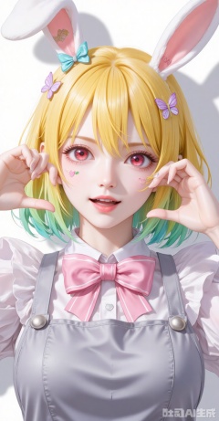 Carrot\(one piece\),lvjing,baoshi,lvjing,blonde hair,rabbit ears,rabbit girl,red eyes,close-up,short hair,multicolored hair,gradient hair,green hair,