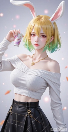 Carrot\(one piece\),lvjing,baoshi,lvjing,blonde hair,rabbit ears,rabbit girl,red eyes,close-up,short hair,multicolored hair,gradient hair,green hair,