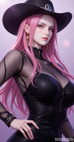 lvjing,Jewelry Bonney\(one piece\),Jewelry Bonney\(one piece\),pink hair,purple eyes,hat,long hair,sharp eyes,
