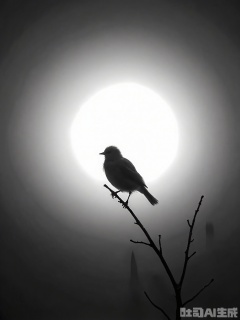 HBYS, A black and white image capturing a solitary bird perched on a slender, barren branch. The branch is bathed in a focused, white light, standing out against the surrounding gloom. The bird's feathers are ruffled, suggesting a gentle breeze, adding to the poignant stillness. The scene is minimalist, with a strong emphasis on texture and form through light and shadow.