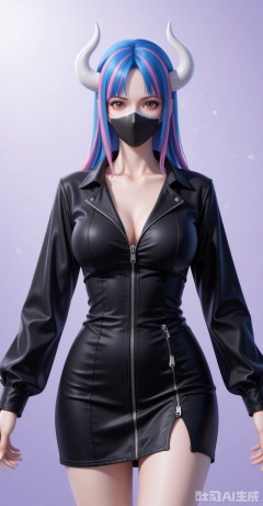 lvjing,pifu,Ulti\(one piece\),lvjing,baoshi,lvjing,blue hair,two-tone hair,pink hair,brown eyes,horns,white horn,mouth_mask,fair_skin,