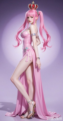 lvjing,pifu,Perona\(one piece\),crown,pink hair,black eyes,long hair,fair_skin,bangs,twintails,(blunt bangs:1.1),