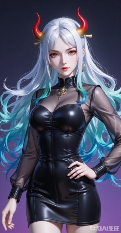 lvjing,pifu,Yamato,horns,white hair,brown eyes,multicolored hair,gradient hair,very long hair,aqua hair,fair_skin,shiny_skin,,