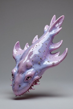 beijihui,a close-up shot of a purple sea slug,adorned with tiny black dots. The sea slug's body is adorned with a light purple tint,adding a pop of color to the otherwise monochromatic image. The background is a stark grey,creating a stark contrast to the sea slug.,
