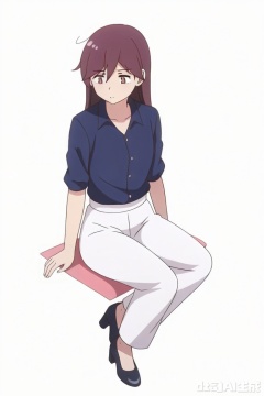 su moting\(god troubles me\),long hair,white pants,blue collared shirt,block heels,witch (madoka magica)