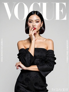 Fashion magazine cover, close-up shot, up close shot, Oriental beauty, empty inspiration, flat illustration, a fashionable woman, standing in front of the cover text of the fashion magazine graceful sexy pose, white cover text, decorated with gorgeous patterns and beautiful lines, slim-fit, etc. , deconstructs minimalist line drawings. Fractal art effects, Dolce and Gabbana and Balenciaga Haute Couture, (sunglasses), Super ambient fashion posters,