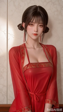 general, sfw, Glossy background, anime,1woman, brown eyes, solo, breast, exquisite skin, looking at viewer, very awa, red dudou, red clothes