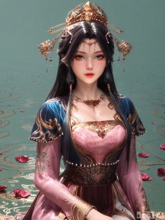 score_9,score_8_up,score_7_up,source_cartoon,source_anime,1girl,looking_at_viewer,realistic,Vivid Colors,bright environment,delicate water,hair_ornament,shiny skin,shiny hair,reflection,dress,falling petals,extreme detail description,(upper body:0.3),put one hand on your chest,long_hair,(skindentation:1.3),bright,sunshine on face,light,sweating,light,glowing,sunshine,bright,reflection,(pale_skin:1.3),white pantyhose,clear background,super high detail background,sitting_down,black-hair