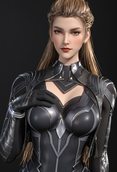 (looking_at_viewer:1.2),upper_body,(gigantic breasts:0.6),(slender:1.2),facing viewer,<lora:YQ_pony_raoyao_richangfuzhuang_V4:0.8>,q1528437228,1girl,solo,long hair,armor,brown hair,bodysuit,brown eyes,gloves,blonde hair,braid,mole under eye,black bodysuit,boots,grey hair,black hair,jewelry,black gloves,blue eyes,bracelet,belt,green eyes,high heels,(simple background,pure black background,black background:1.1),perfect_anatomy,