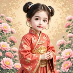 The fine brushwork and heavy color style draws on the Dunhuang flying elements. The Chinese beauty has long hair combed into a flying high bun and decorated with golden steps. Wearing a modified flying dress with red and gold colors, the skirt is painted with heavy colors and ribbons, and is covered with silk like a flowing cloud. The background is painted with Dunhuang caisson patterns, embellished with Baoxiang flowers, showing the oriental classical beauty with rich and gorgeous colors, and retaining the dignified and lively charm of the beauties."