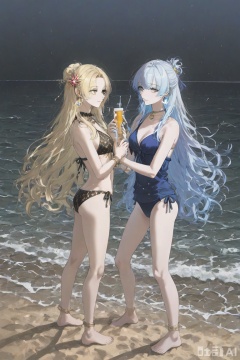 (gawako:1.1), (toi8), (yonchan:0.8), (luicent:0.9), (masaki (ekakiningen):0.8), (hxxg:0.8), Latest, (1girl), (Bianca Yulan Del Artagina:1), (Swimwear Outfit), (Black Bikini), 1 Girl, Shoulder-baring, Sand Beach, Azure Sea and Blue Sky, (Straw Bangle), Arms with (Delicate Silver Chain Collar), (Sunlit Perspective), Earrings (Pearl), (Side View), Hair Accessory (Wave-Patterned Shell Hairpin), Jewelry (Simple Starfish Brooch), Flowing Long Hair (Curly with Sand on Tips, Bright Golden Shine), (Contemptuous Gaze), ((Gradient Pink-Blue Beach Towel)), Slightly Parted Lips, Golden Eyes, Golden Long Hair (Shiny and Vibrant), (Waves Crashing on Shore), (Bikini Bottoms), (Shoulder Blades), Side Hair (Slightly Lifted by Sea Breeze, Golden Strands), 1 Girl, Standing Pose, Sand, Extremely Long Hair (Small Coral Hairpin at Ends, Golden Glow), White Sunscreen Jacket (Open), (Leg Close-up), (Foot Close-up), (Ocean Theme), (Sunny Day), Sand Beach, Waves, Sunshine, Masterpiece, Best Quality, Amazing Quality, Ultimate Beauty, Ultra-High Resolution, (Overhead View), Foreshortening, (Artist: quasarcake:0.6), Ultimate Beauty, (wlop:0.9), Masterpiece, Best Quality, Good Quality, Latest, 2024, 2023, Visual Impact, Tense Composition, 32K UHD, Sharp Focus, Top-Tier Quality, Emotional Rendering, Groundbreaking Ultimate Masterpiece, Exquisite Details, Gentle Atmosphere (Warm Sunshine Tone), High-End Texture (Swimwear Fabric), Fashion Photography Style, (Visual Impact), Stunning Visuals (Interaction Between Waves and Character), Official Artwork, Colorful (Gradient Sea Blue + Bright Orange Beach Ball), Splash of Colors (Water Splashes), Cinematic Perspective, Style: Movie Poster (Blending Light and Shadow with Natural Sea Views)