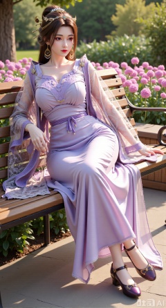 (masterpiece, best quality:1.2),A beauty wearing a pearl hairband dons a long dress, paired with a sheer knitted cardigan and Mary Jane shoes. Leaning on a garden bench filled with macaron - colored flowers,.Sunlight filters through the leaves onto her face, creating a lazy and gentle atmosphere, and her skirt sways softly in the breeze. 8K resolution, detailed texture of knitted fabric, lustrous pearl texture, vivid flower colors, soft natural light, Instagram - style filter texture.,(huge breasts:2.99),(full breasts:2.99),XyunxiaoYK,Xlonger2,XjiziyeuX2,Xmeifei2,Xtanghezi,XyunyunPVC,Xfengmian2