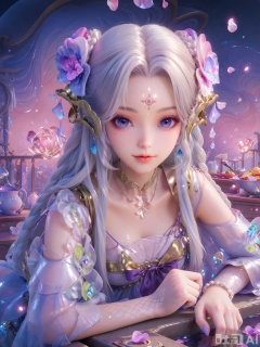 score_9,score_8_up,score_7_up,1girl,looking_at_viewer,realistic,1girl,Vivid Colors,bright environment,delicate water,hair_ornament,shiny skin,shiny hair,reflection,(wariza:1.2),dress,jewelry,flower sea,falling petals,extreme detail description,(upper body:1),put one hand on your side,kitchen,kitchen,long_hair,(skindentation:1.3),Fishnet stockings,hair ornament,earrings,necklace,forehead mark,