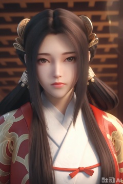 1girl, solo, long hair, looking at viewer, brown hair, black hair, hair ornament, closed mouth, upper body, chinese clothes,, expressionless,indoors,Semi_Realistic,
