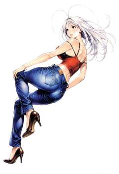 <lora:add-detail-xl:1>,masterpiece,best quality,absurdres,highres,detailed eyes,beautiful,detailed background,perfect eyes,realistic,solo,1girl,simple background,full body,white background,dynamic pose,from behind, <lora:Maya_Natsume:1>,antenna hair,breasts,large breasts,high heels,strap slip,brown eyes,pants,shoes,bra,long hair,underwear,midriff,camisole,white hair,bare shoulders,lingerie,black bra,denim,crop top,jeans,