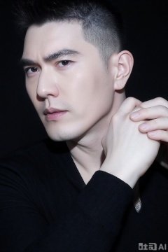 A mature and stylish man in his 30s, muscular,with a tough outline and short, stylish haircut, stands in a contemplative posture. His silhouette is against a pure black background, emphasizing his form. The composition focuses on his face, hands, and tight-fitting black turtleneck. High contrast light and shadow create a mysterious atmosphere, enhancing the texture of his clothing. The picture style is simple and high-end, with a strong sense of light and shadow, highlighting the materials and fit of his clothes. No excess decoration; the background remains pure black.xnz,wjc