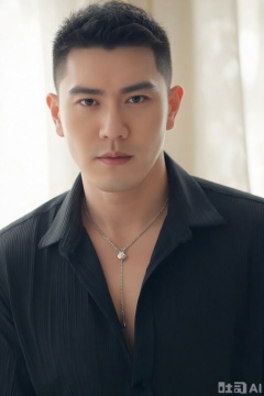 xnz,wjc,solo,realistic, The man in the picture is wearing a black pleated shirt with the collar slightly open, revealing part of his chest. an indoor environment with soft lighting, which highlights the man's deep eyes and three-dimensional features, giving an overall impression of being handsome and charming., masterpiece, realistic, best quality, highly detailed,